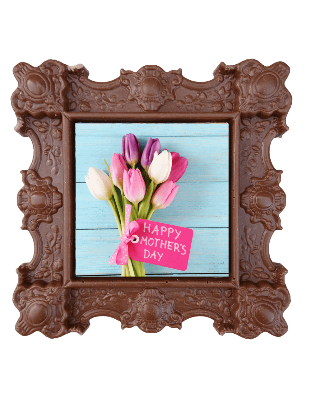 Surprise your dear mother with this amazing framed Mother's Day Gift, completely made out of delicious chocolate! This design will say more than a thousand words and will certainly show your mother your love for her.